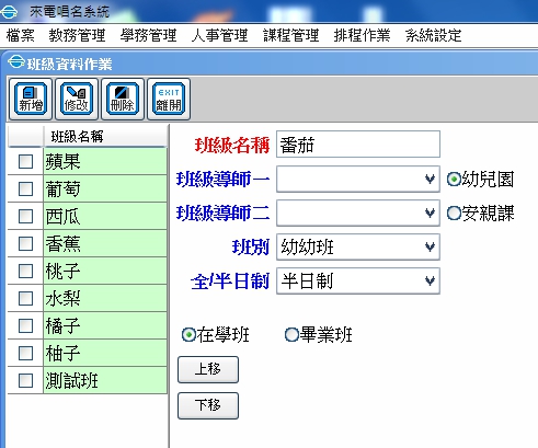 學務管理/班級資料作業/新班級名稱 建立新班