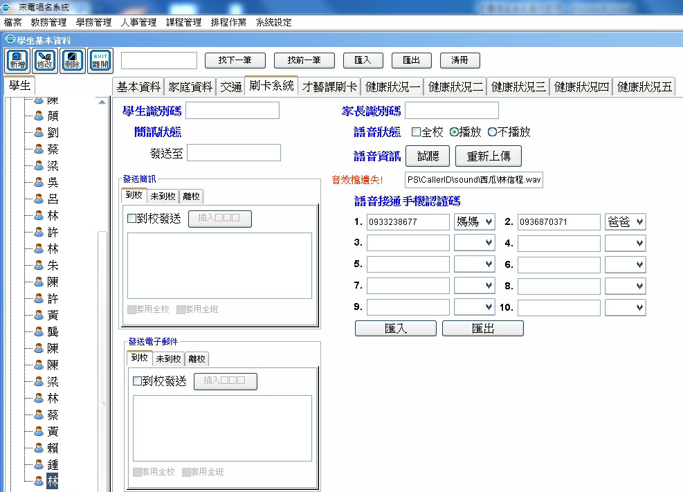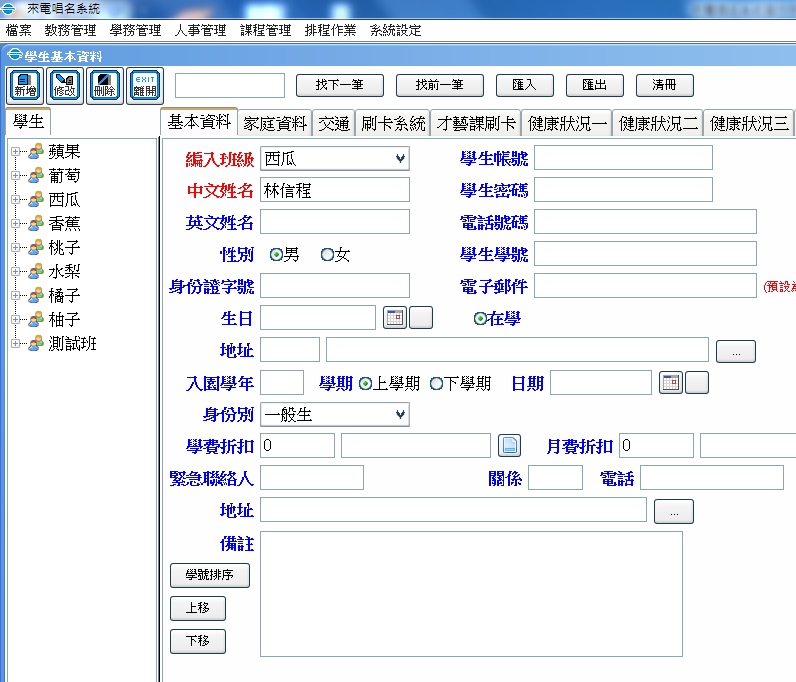 教務管理/學生基本資料 點選某一學生後/點選 刷卡系統頁面