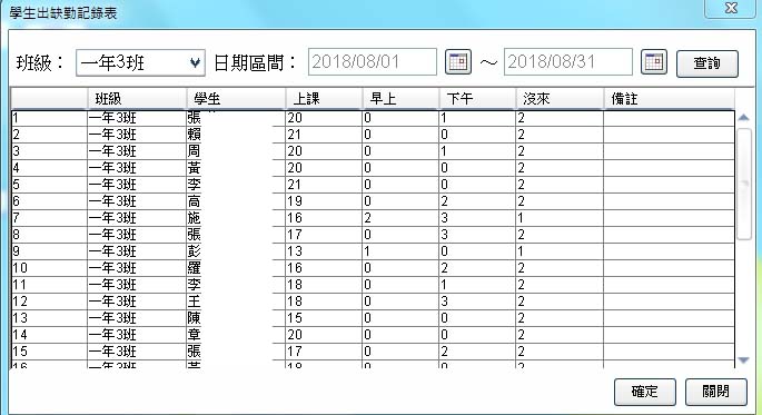 【學生出缺勤紀錄表】